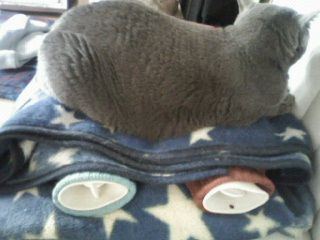 湯たんぽ二つを毛布でくるむという贅沢なベッドで寒さをしのぐ我が家の猫です。