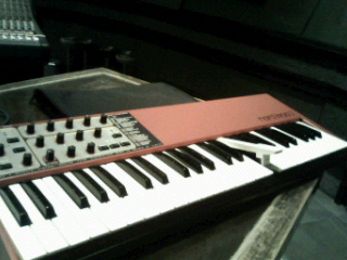 やる気満々、ご自慢のシンセを持ち込んだモトキチ師匠、 搬入の時、最後に焦ってしまったようでどこかに思いっきりぶつけてしまった模様。 遠目に違和感があるなぁと思っていたら、なんと鍵盤が壊れてしまってました。 こんな画はどらえもんかなんかの漫画でした見た事ありません!!!