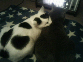 で、水戸の写真は撮り忘れてしまいまして... 代わりに本日の我が家の猫たちでご勘弁を。 ストーブの前で二人仲良く寄り添ってますが、花梨は相変わらず翼にアゴを乗せてます...