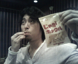 昨日のベストショット。じゃがポックルとモトキチ師匠。