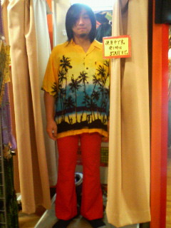 さらにライブハウスに戻ると思いきや、またもやホット横山の誘導で今度は隣の古着屋でステージ衣装の物色開始...(笑、写真参照、明日の下北でこの勇士は観れるでしょう!?)